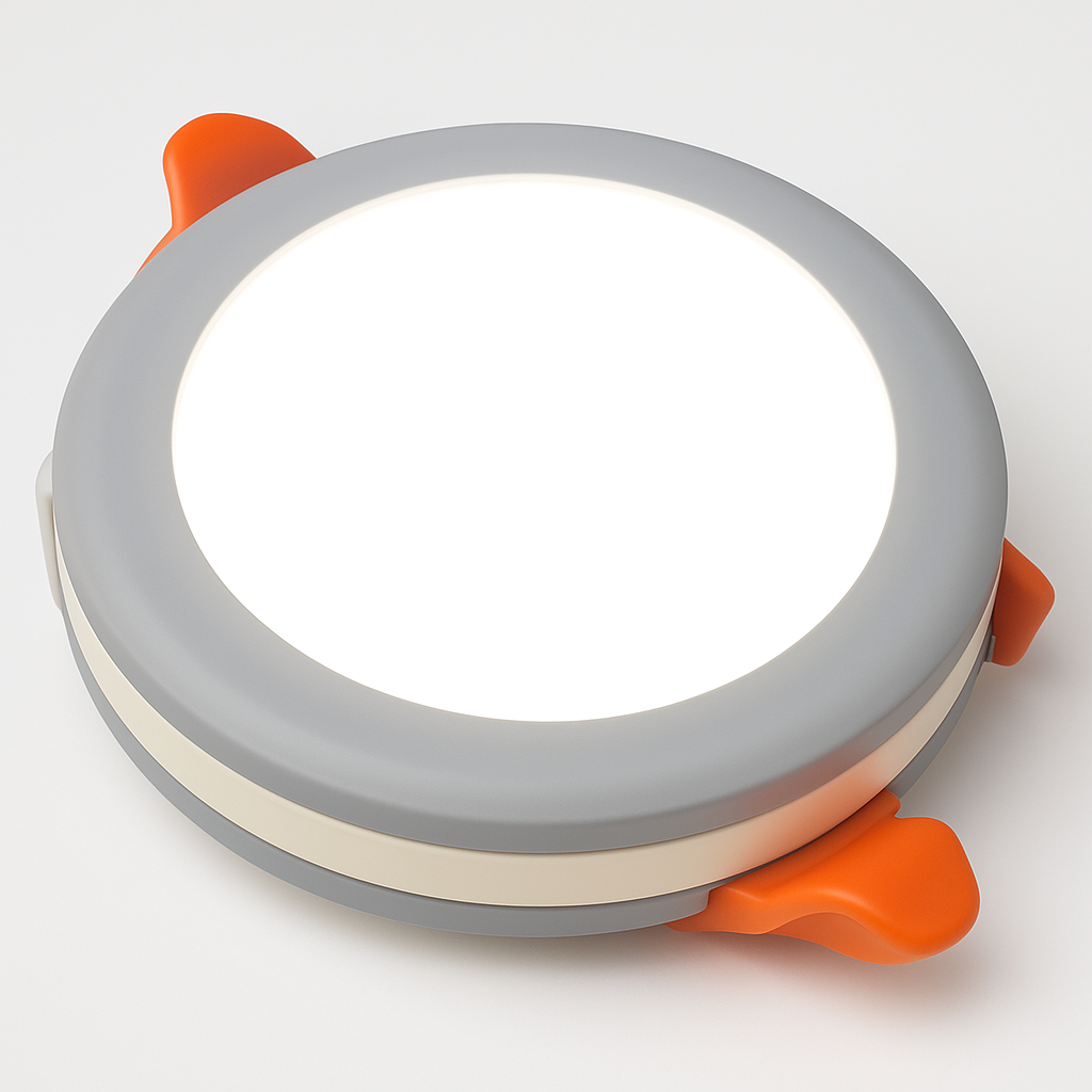 - Пересувні монтажні кліпси забезпечують можливість встановлення світильника в широкий діапазон врізного отвору